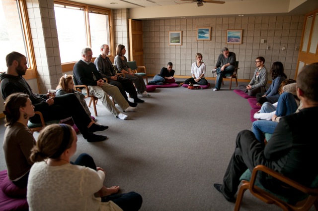 Retreatants gather for a combination of lecture, group reflection and contemplative practice.